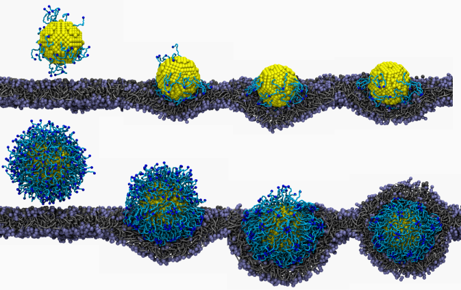 Nanoparticles (NPs) are in use to efficiently deliver drug molecules into diseased cells. The surfaces of NPs are usually grafted with polyethylene glycol (PEG) polymers, during so-called PEGylation, to improve water solubility, avoid aggregation, and prevent opsonization during blood circulation. The interplay between grafting density σp and grafted PEG polymerization degree N makes cellular uptake of PEGylated NPs distinct from that of bare NPs. To understand the role played by grafted PEG polymers, we study the endocytosis of 8 nm sized PEGylated NPs with different σp and N through large scale dissipative particle dynamics (DPD) simulations. The free energy change Fpolymer of grafted PEG polymers, before and after endocytosis, is identified to have an effect which is comparable to, or even larger than, the bending energy of the membrane during endocytosis. Based on self-consistent field theory Fpolymer is found to be dependent on both σp and N. By incorporating Fpolymer, the critical ligand-receptor binding strength for PEGylated NPs to be internalized can be correctly predicted by a simple analytical equation. Without considering Fpolymer, it turns out impossible to predict whether the PEGylated NPs will be delivered into the diseased cells. These simulation results and theoretical analysis not only provide new insights into the endocytosis process of PEGylated NPs, but also shed light on the underlying physical mechanisms, which can be utilized for designing efficient PEGylated NP-based therapeutic carriers with improved cellular targeting and uptake.