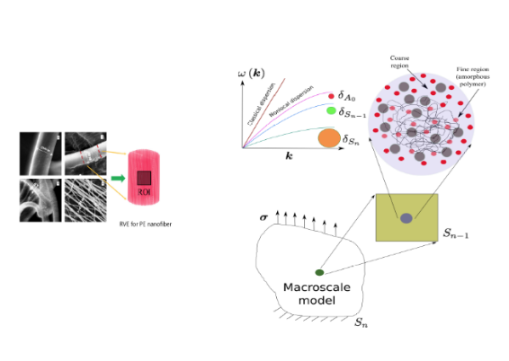In the current work the nonlocal multiscale bottom-up peridynamic framework is modified (i.e. extended PFHMM) in order to upscale the nonlocally interacting models at different length scales. The generalized scheme was implemented to a complex heterogeneous polymer: ultra high molecular weight polyethylene (UHMWPE). Using extended PFHMM, the atomistic model of UHMWPE was linked with the coarser peridynamic (PD) representative unitcells. Different phases (e.g. highly oriented unidirectional, amorphous or semicrystalline) of UHMWPE were blended during upscaling of polyethylene (PE) microfibrils. In literature, a thorough theoretical investigation on the deformation mechanism of highly oriented UHMWPE microfibrils is not available. So the current work also rigorously discussed the role of different loading conditions (such as torsion, tension and compression), pre-existing damages and aspect ratios on the stiffness as well as the strength of the UHMWPE microfibrils by using molecular dynamics (MD) simulation. Through MD simulation, the effect of complex-loading condition on the strength reduction was also investigated. Cauchy–Born rule was applied through extended PFHMM in order to link the deformation from atomistic scale models with the macroscale UHMWPE representative unitcells. Finally, a slightly modified AIREBO potential was used to show that the unidirectional UHMWPE is independent of strain rate. The results had reasonable agreement with the experimental results. The current work can be considered to be a building block for multiscale modeling of complex heterogeneous materials.