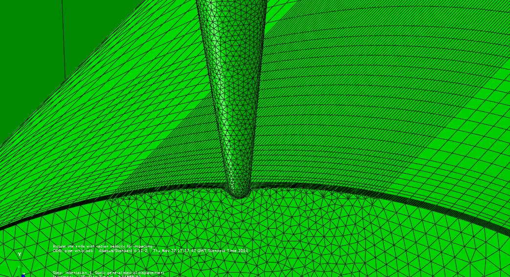 2. I have tried all the other meshing scheme available from Abaqus 6.12, including the Hex (linear and Quad), Tet (Quad), Wedge (Quad). All these schemes cause the solution failed after along time of running. However, theory shows that Hex (Quad) and Tet (Quad) are the best schemes to simulate and estimate the stress?