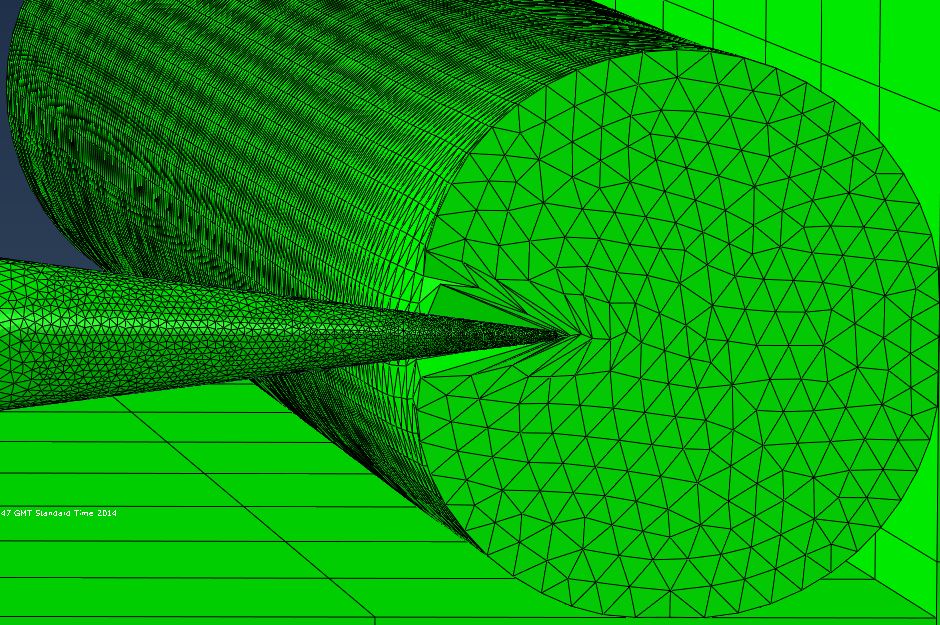 Basically I am trying to simulate an indentation experiment on a biological tissue, with glass capillary as the tool for indentation. However, the tip of the capillary is very small compared to the actual size of the tissue, i.e. diameter of the capillary tip is ~0.7cm, the diameter of the tissue under indentation is ~50cm and the length of the tissue (modelling the tissue as a cylinder now) is ~500cm. The real experiment shows that the indentation can easily go to 16cm with NO penetration. However, building a model to simulate this indentation has been a headache for a past few months. Here are the approaches I have tried until now: