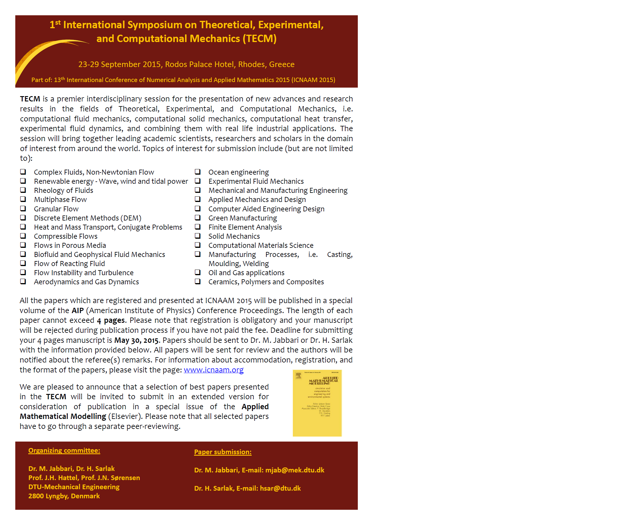 your 4 pages manuscript is May 30, 2015. Papers should be sent to Dr. M. Jabbari or Dr. H. Sarlak