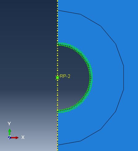 I use the 2D axisymmetric model to build a surface-based fluid cavity in Abaqus/standard. The model is showed in the attached picture. The fluid cavity surface is the arc and the refenrence point is the center of the arc.
