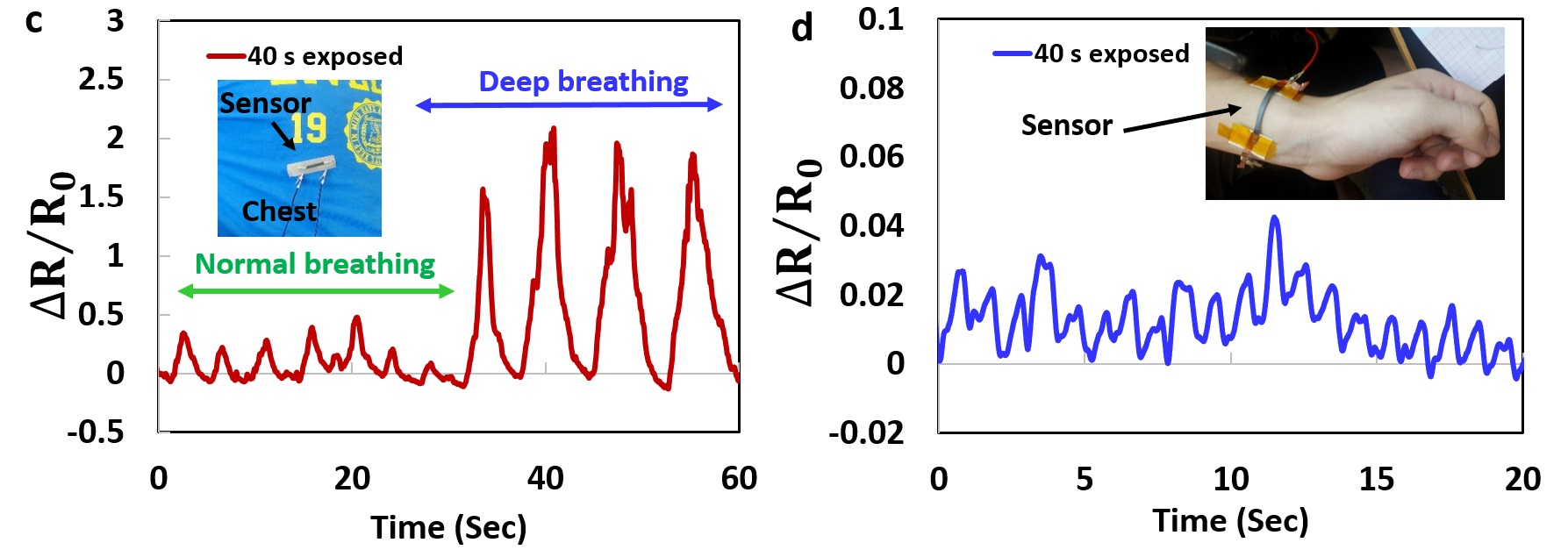 limited stretchability (ε≤50%). We demonstrate the high performance strain sensing of our sensors in both small and large strain sensing applications such as human physiological
