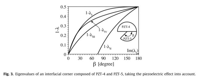 (Hirai, H., Chiba, M., Abe, M., Ikeda, T., Miyazaki, N. Stress intensity factoranalysisofaninterfacialcornerbetweenpiezoelectricbimaterialsusingthe H-integralmethod. Eng. Fract. Mech., vol. 82, pp. 60-72, 2012.).