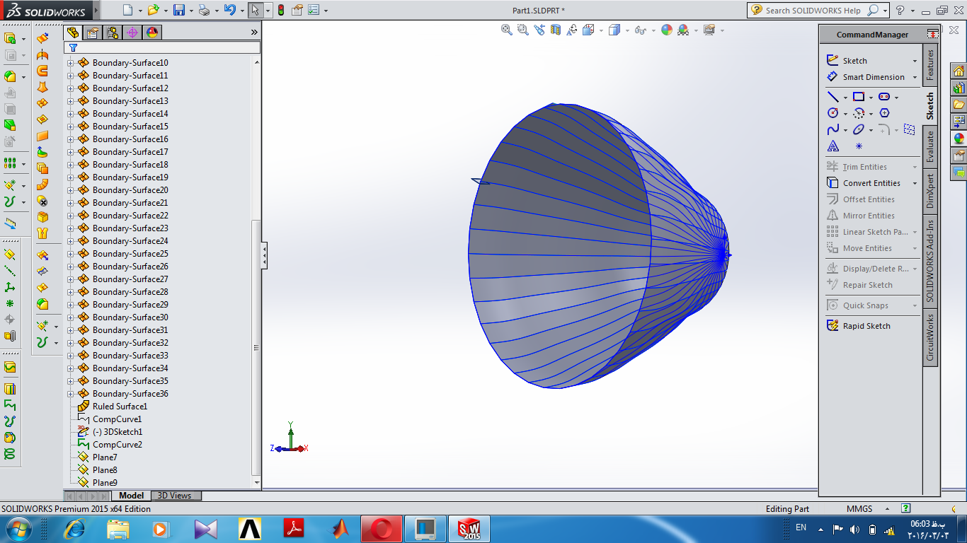 I have a shell model in solidworks, I want to full it's volume But don't know that how do it? edgs of this model are discontinuous curve.