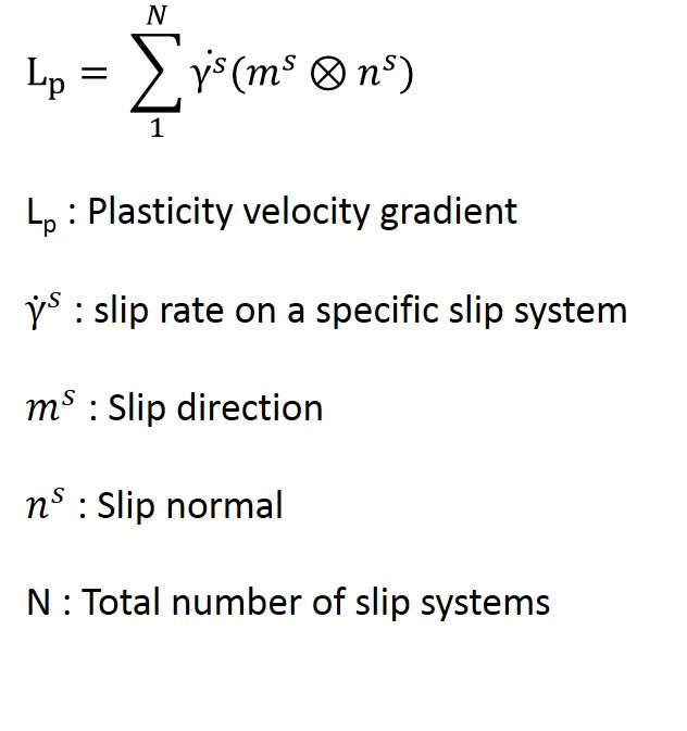One of the fundamental kinematic equation in crystal plasticity is the relation between the velocity gradient and slip rate.
