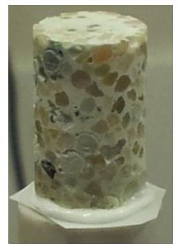Fig. 1 (a) Global view of the in situ compression test combined with XR-μCT at Laboratoire Navier; (b) Sample of lightweight concrete.