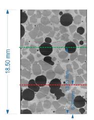 Fig. 2: (a) Full CT image of a lightweight concrete; (b) cut within the sample.