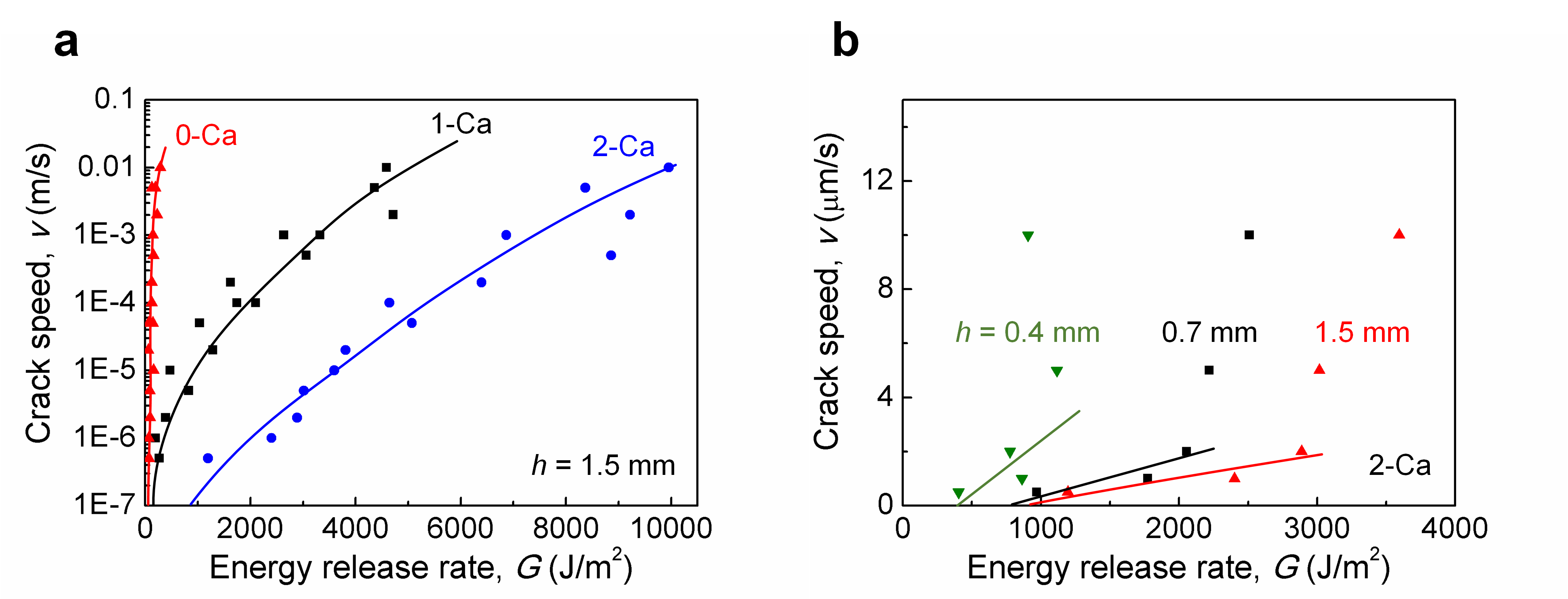 1. Similar to the question of Rong, I wonder what caused the difference of static fatigure threshold, the cyclic fatigue threshold and the Lake-Thomas threshold. Let's say if we can design an experiment such that the time-depenent effects of poroelasticy and viscoelasticy are small, would you think these thresholds coincide?