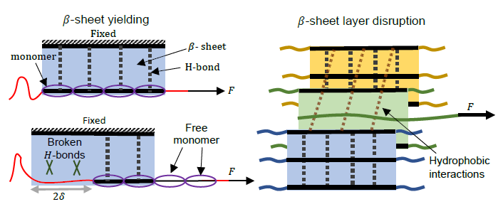 Beta-sheet protein structures and domains are widely found in biological materials such as silk. These assemblies play amajor role in the extraordinary strength and unique properties of biomaterials. In our new work, we employ simple Langevin-based models to investigate the behavior and the collapse of these structures.