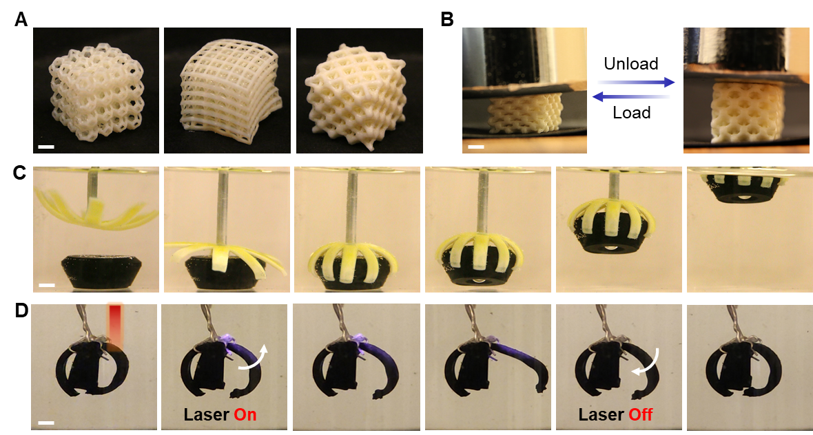 Fig. 3 3D printed tough hydrogel architectures and forceful actuators