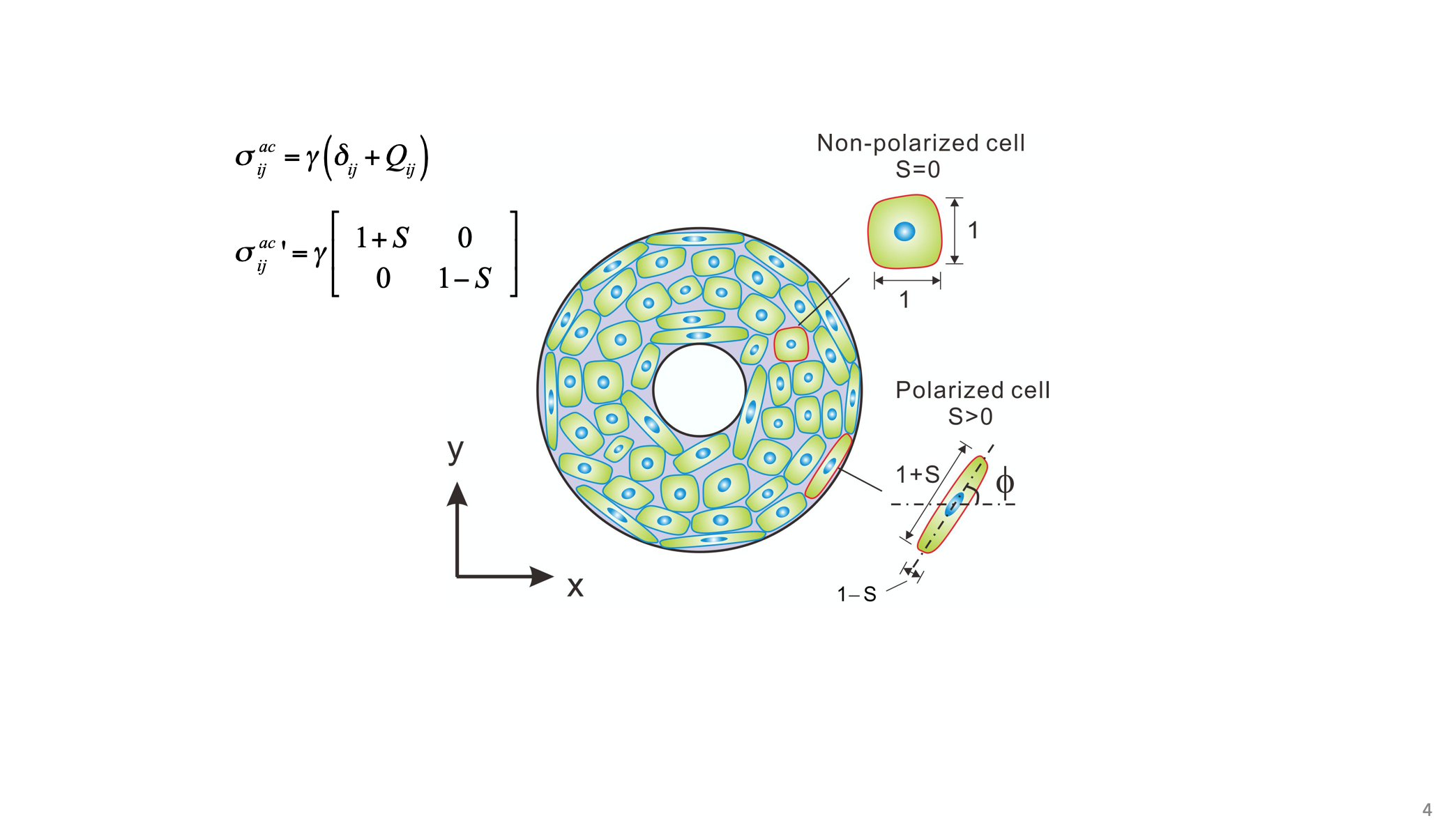 When Q_ij is equal to zero, the active stress is isotropic (corresponding to un-polarized cell), otherwise, it is anisotropic (corresponding to the polarized cell). The principal active stress, i.e., the stress along the axes of the cell, can be expressed as