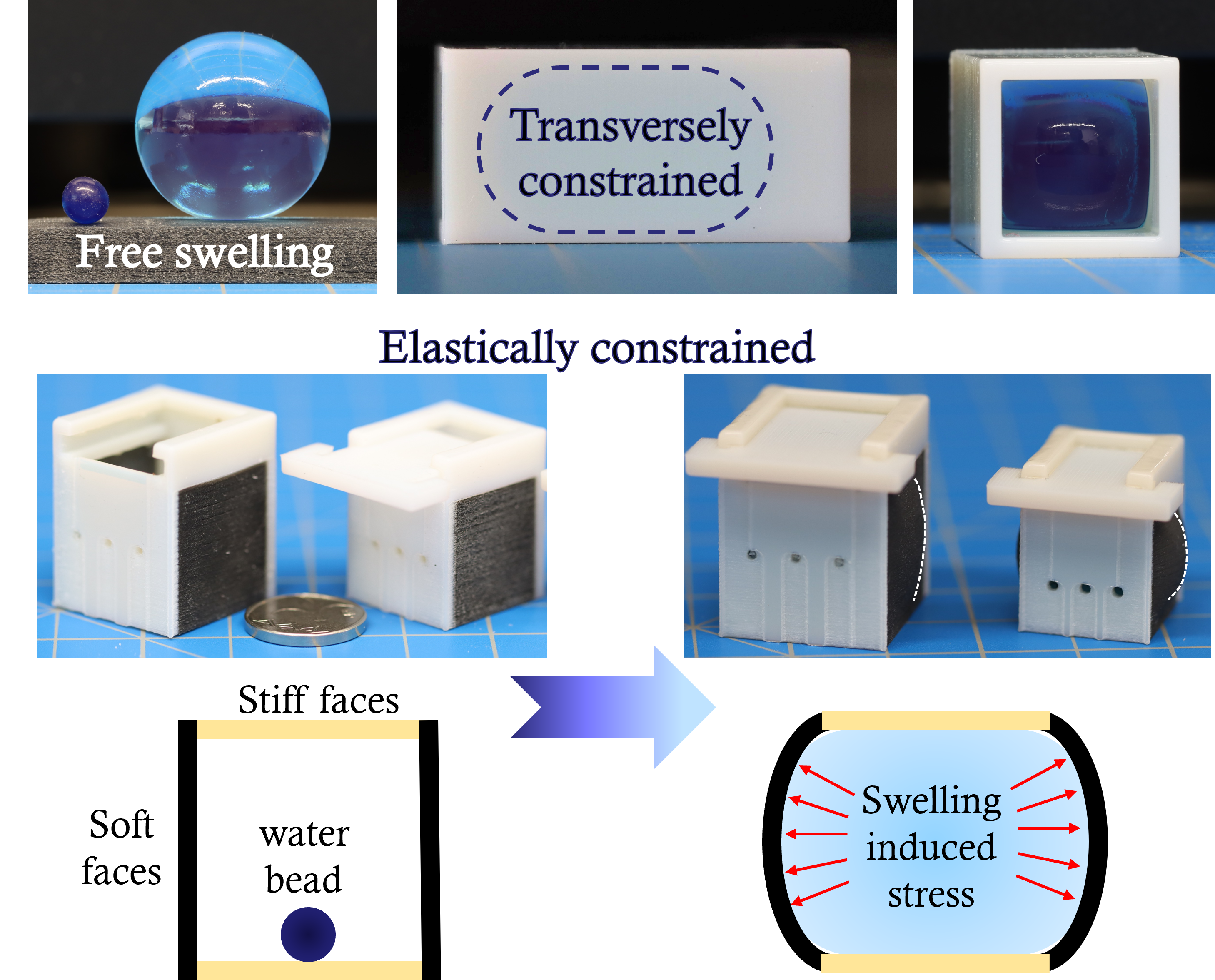 Simuli-responsive hydrogels that swell under constraints such as spatial geometric confinement are commonly employed in many applications to perform mechanical work. In this contribution, we present a simple 3D-printing based method to quantify the mechanical interactions between the gels and their environment. Our findings underscore the potential of gels in the design of actuators, sensors, biomedical devices, etc…