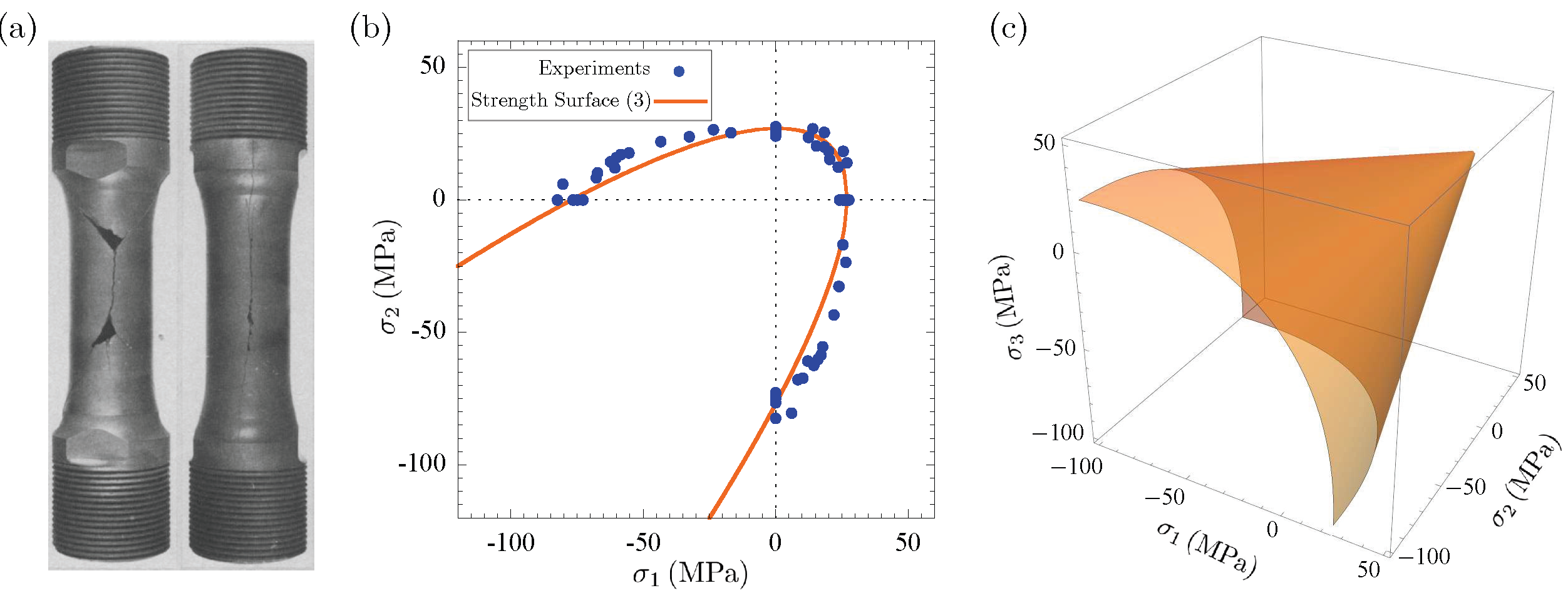 Indeed, while experiments to measure the uniaxial tensile strength — that is, the point defined by the equation — are, in general, fairly accessible, experiments that probe triaxial states of stress on the strength surface (1) are challenging.