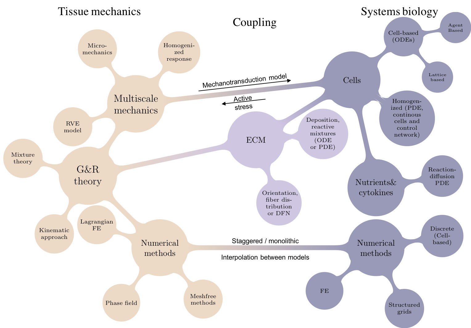 Fig 6. Graphical overview of the variables of interest, theories, and numerical methods needed to fully integrate the observed mechanics of growth and remodeling to computational systems biology [58].