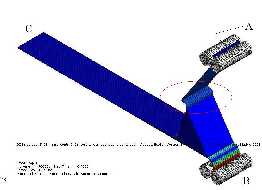 I'm trying to model a peel T test on a composite material composed of steel and polymer (polypropylen) on Abaqus 6.7. Between these parts, there are cohesive elements COH3D8.