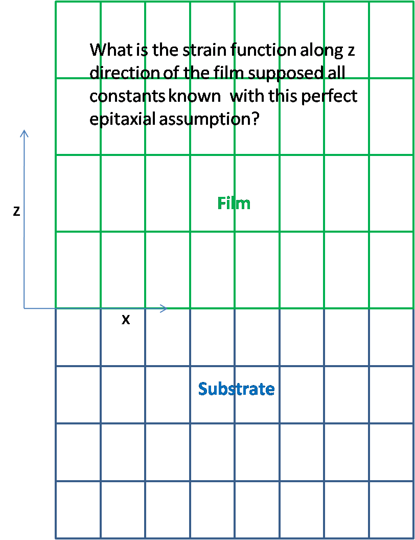 Does anyone know how to get the strain function or strain energy of the perfect epitaxial film? Or could you recommend some textbooks or references about this topic?