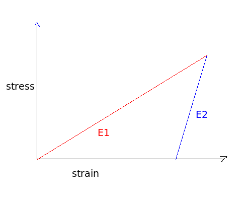 material behaves with an Elastic modulus and when I unload the piece the
